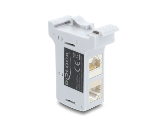 מתאם Delock כפול מסוכך RJ45 Cat.6A נקבה לנקבה | תומך PoE | להרכבה על מסילת DIN