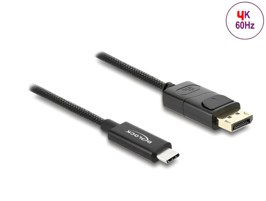 כבל תצוגה קואקסיאלי Delock מחיבור USB-C זכר לחיבור DisplayPort 4K 60Hz זכר | עם ציפוי קלוע | צבע שחור