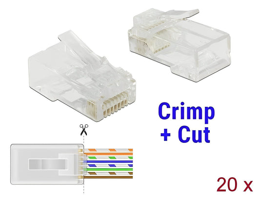 תקע רשת לא מסוכך RJ45 Cat.6 UTP PASS-THROUGH סט 20 יח