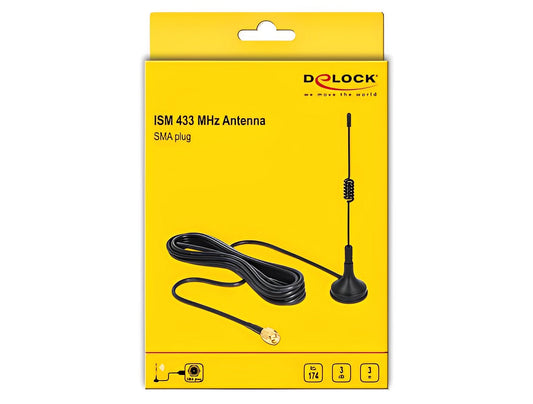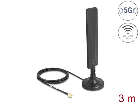 אנטנה פנימית Delock 5G LTE / 3 dBi כלל כיוונית עם בסיס מגנטי | כולל כבל RG-174 באורך 3 מטר עם מחבר SMA זכר