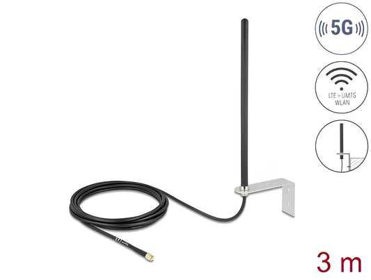 אנטנה חיצונית כלל כיוונית 3-5dBi | Delock 5G LTE | להתקנה קבועה על הקיר | עם כבל RG-174 באורך 3 מטר מחבר SMA זכר