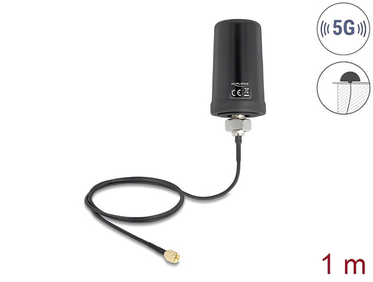 אנטנה חיצונית IP67 כלל כיוונית 1.1-4.0dBi | Delock 5G LTE GNSS WiFi 6 | להתקנה על הגג | עם כבל ULA100 באורך 1 מטר מחבר SMA זכר