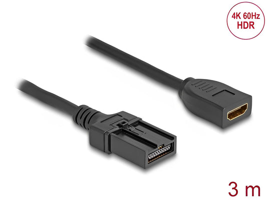 כבל Delock HDMI 4K 60 Hz לרכב (Automotive) מחיבור HDMI-A נקבה לחיבור HDMI-E זכר | אורך 3 מטר
