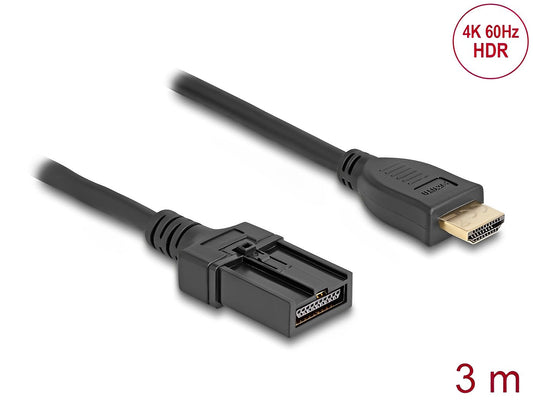 כבל Delock HDMI 4K 60 Hz לרכב (Automotive) מחיבור HDMI-A זכר לחיבור HDMI-E זכר | אורך 3 מטר