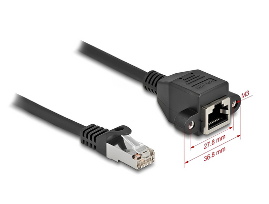 כבל רשת מסוכך לפאנל Delock Cat.6A RJ45 S/FTP זכר לנקבה | מרחק בין הברגים 28 מ"מ