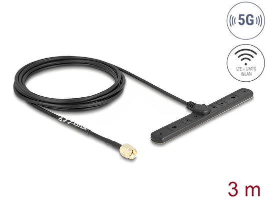 אנטנה חיצונית Delock 5G LTE / 3 dBi כלל כיוונית | עם כבל RG-174 באורך 3 מטר מחבר SMA זכר