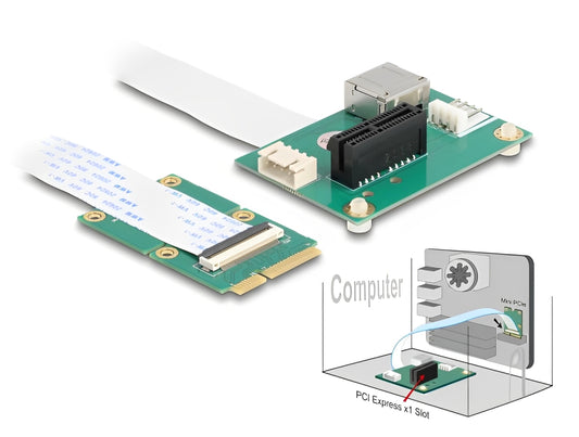 מתאם רייזר Delock מחיבור Mini PCIe זכר לחיבור PCIe x1, V1.1 נקבה + יציאת USB על כבל שטוח