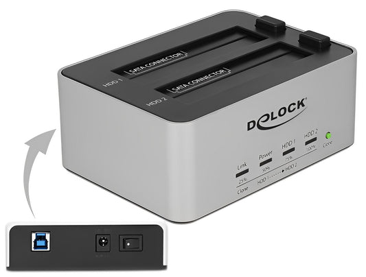 תחנת עגינה Delock USB 5Gbps עם פונקציית שכפול עבור 4 כוננים SATA HDD/SSD | חיבור למחשב eSATA/USB