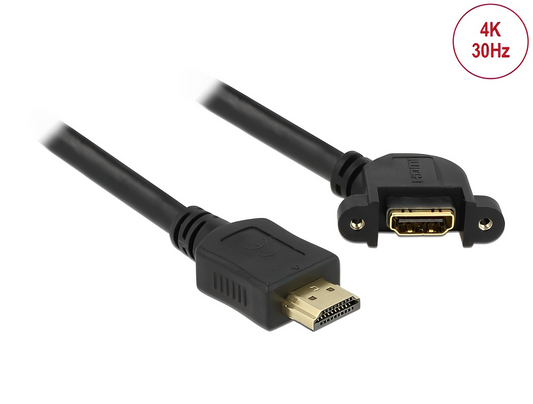 כבל מאריך לפאנל Delock HDMI 4K זכר לנקבה בזווית 110° | מרחק ברגים 30 מ"מ