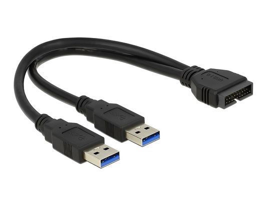 כבל USB 3.0 תקע 19 פין ל- 2 תקעים USB-A אורך 25 ס"מ