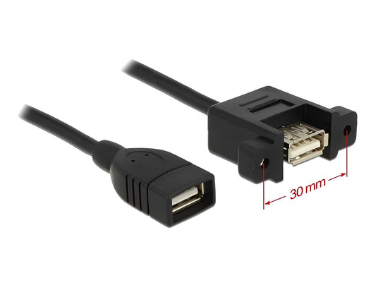 כבל USB-A 2.0 נ/נ להתקנה בפאנל עם מרחק בין הברגים 30 מ"מ