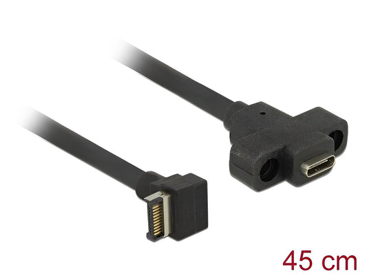 כבל שטוח לפאנל Delock USB 10Gbps מחיבור USB-E 90° זכר לחיבור USB-C נקבה | אורך 45 ס"מ