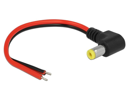 כבל חשמל תקע DC 5.5x2.5 90° ל- 2 גידים פתוחים אורך 15 ס"מ