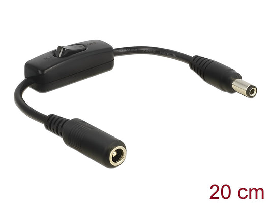 כבל מאריך חשמל DC 5.5x2.5 + מפסק ז/נ אורך 20 ס"מ