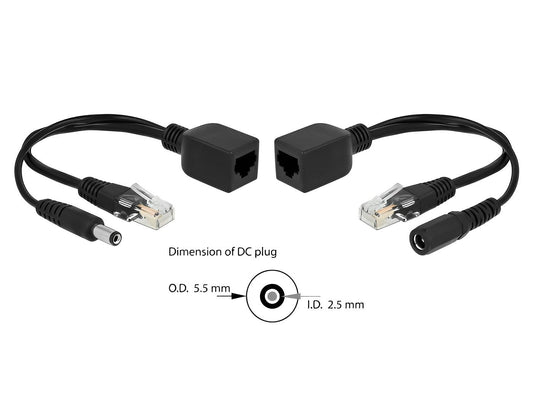 מרחיק Passive PoE DC 5.5x2.5 על גבי כבל רשת RJ45