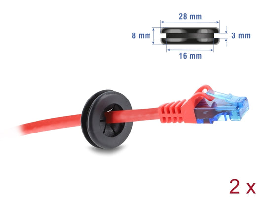 תושבת כבל גומי עגולה Delock | צבע שחור | קוטר חור קידוח Ø30 מ"מ | 2 יחידות