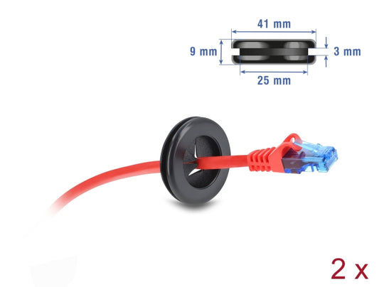 תושבת כבל גומי עגולה Delock | צבע שחור | קוטר חור קידוח Ø25 מ"מ | 2 יחידות