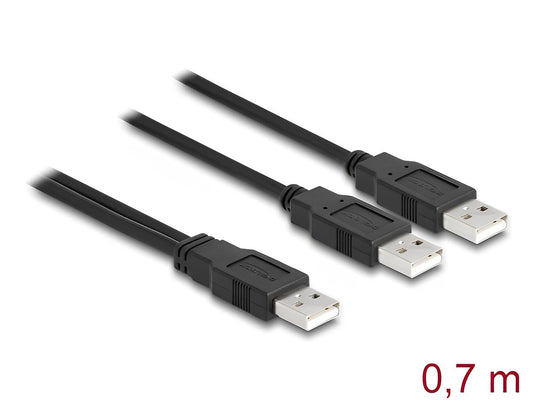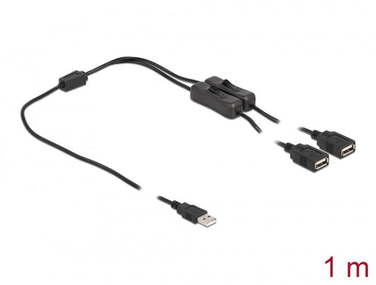 כבל חשמל Delock 5V מחיבור USB-A זכר ל-2 חיבורים USB-A נקבה עם מפסקים | אורך 1 מטר