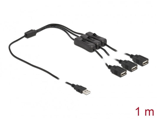כבל חשמל Delock 5V מחיבור USB-A זכר ל-3 חיבורים USB-A נקבה עם מפסקים | אורך 1 מטר