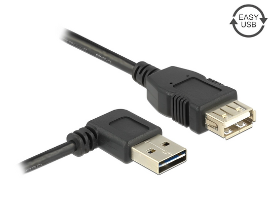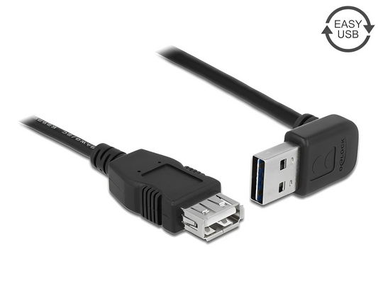 כבל מאריך Delock EASY-USB-A 2.0 זכר בזווית צד 90° לנקבה | צבע שחור