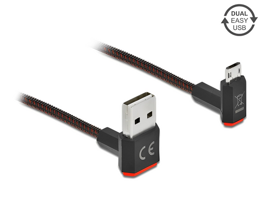 כבל מיקרו EASY-USB 2.0 תקע Micro-B בזווית צד 90° לתקע USB-A עם מחברים דו כיווניים