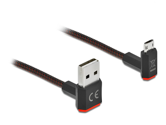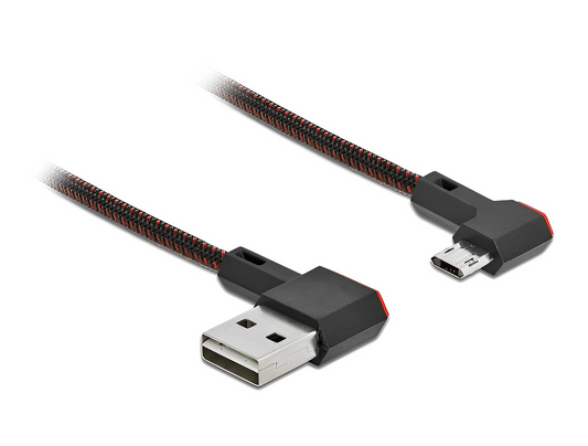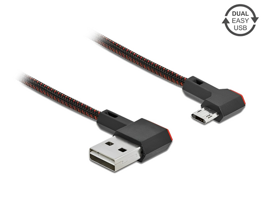 כבל Delock EASY-USB 2.0 מחיבור USB-A זכר בזווית 90° לחיבור מיקרו USB זכר בזווית 90°