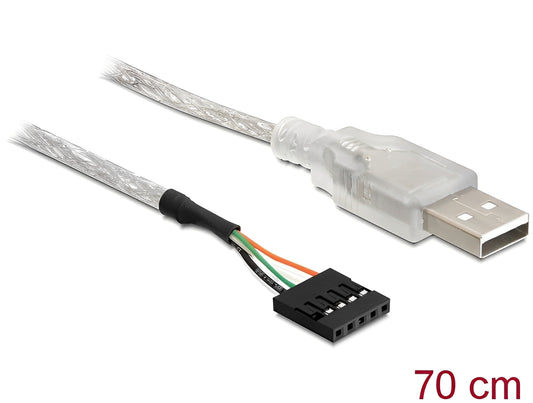 כבל Delock USB 2.0 מחיבור Type-A זכר לחיבור 5 פינים 2.54 מ"מ נקבה אורך 70 ס"מ