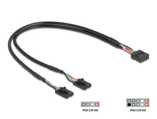 כבל Delock USB 2.0 מחיבור 10 פינים 2.54 מ"מ נקבה ל- 2 חיבורים 4 פינים 2.54 מ"מ נקבה | אורך 30 ס"מ
