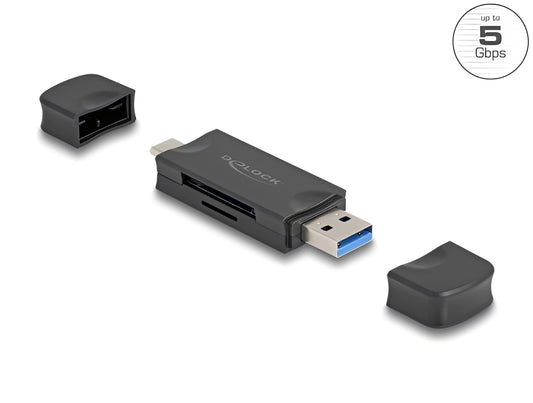 קורא כרטיסים Delock USB-C/A 5Gbps עבור כרטיסי זיכרון SD / Micro SD