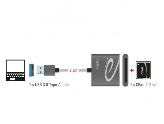 קורא כרטיסים Delock USB 3.0 לכרטיסי זיכרון CFast 2.0