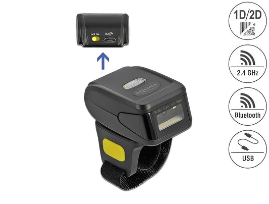 סורק ברקוד מתחבר על האצבע Delock 1D/2D אלחוטי Bluetooth / USB