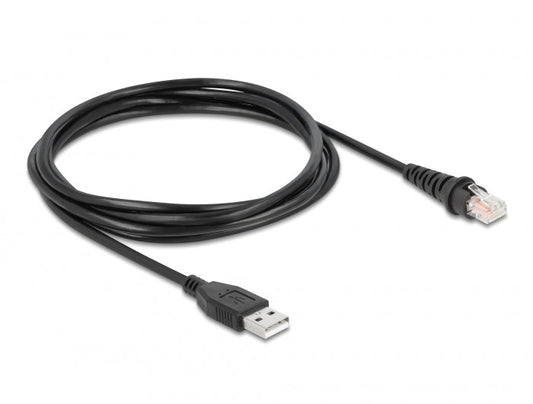 כבל קורא ברקוד מסולסל מתקע USB-A 2.0 לתקע RJ50 אורך 2 מטר