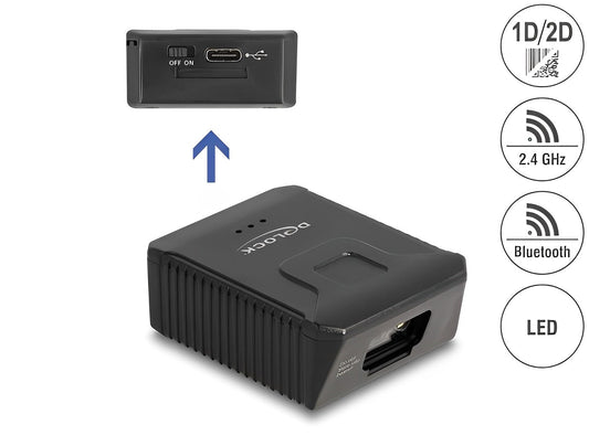 סורק ברקוד מתחבר על כפפה Delock 1D/2D אלחוטי Bluetooth / USB