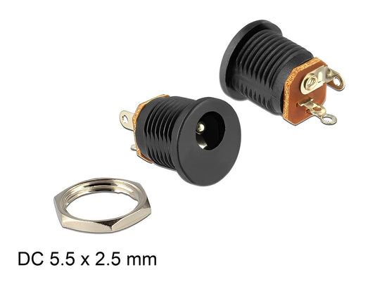 מתאם חשמל Delock DC Barrel 5.5x2.5 נקבה לנקבה עם הברגה