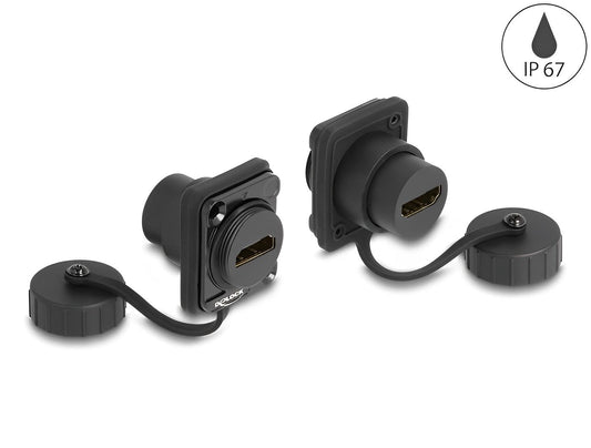 מחבר HDMI-A נ/נ עם מכסה מגן מפני אבק ומים IP67 להתקנה בפאנל מסדרה D