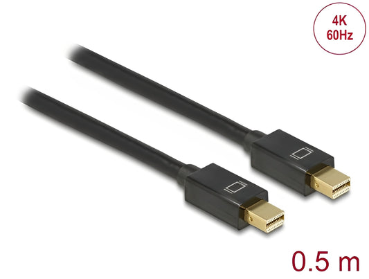 כבל מיני Delock DisplayPort 1.2 4K זכר לזכר תומך 60 הרץ צבע שחור אורך 0.5 מטר
