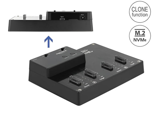 תחנת עגינה Delock USB-C 10Gbps עבור 4 כוננים M.2 NVMe עם פונקציית שכפול