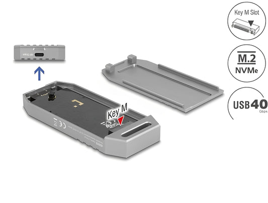 מארז חיצוני Delock לכונן M.2 NVMe SSD אחד עם חיבור USB-C 40Gbps