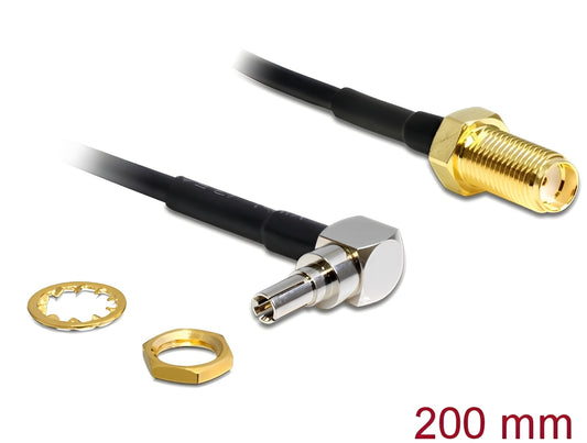כבל אנטנה Delock RG-174 מחיבור SMA נקבה לפאנל לחיבור CRC-9 90° זכר | אורך 20 ס"מ