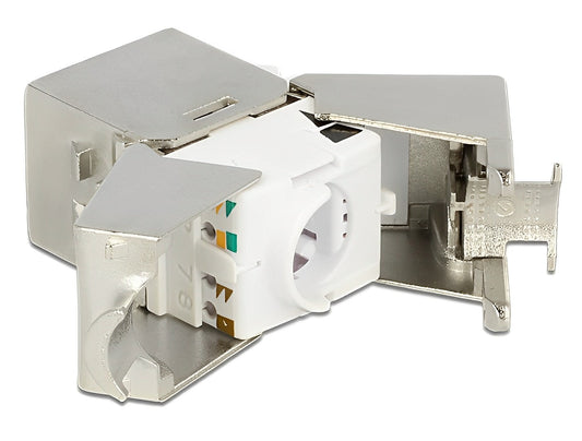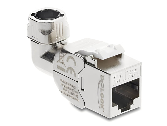 מתאם קיסטון מסוכך Delock שקע RJ45 Cat.6A לחיבור LSA | בזווית 90° | לכבל 6.0 עד 8.5 מ"מ | ללא כלי עבודה