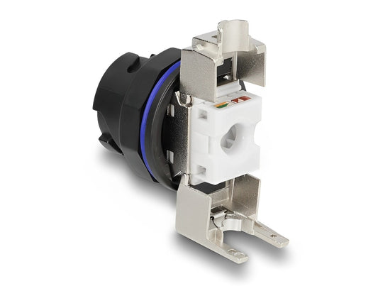 מתאם קיסטון מסוכך Delock שקע RJ45 Cat.6A לחיבור LSA | עם תפס נעילה | ללא כלי עבודה