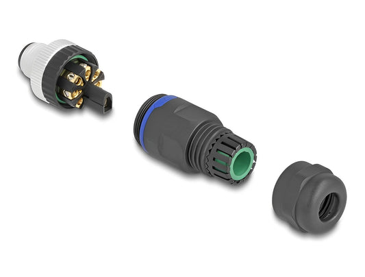 תקע רשת 8 פין Delock M12 X-coded Cat.6A | ללא כלי עבודה