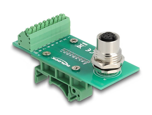 שקע M12 A-coded 8 pin לטרמינל בלוק 9 פין עבור מסילת DIN
