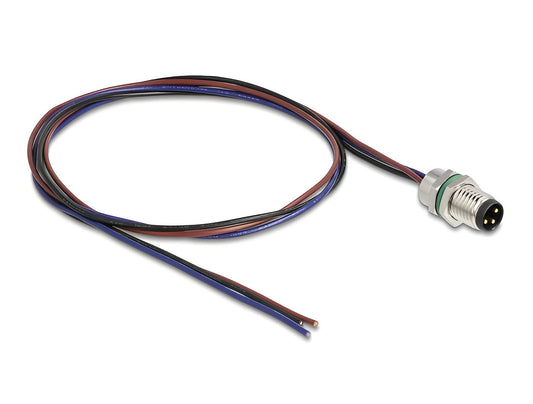 תקע M8 3 pin להתקנה בקדח עגול עם כבל 3 גידים אורך 0.5 מטר
