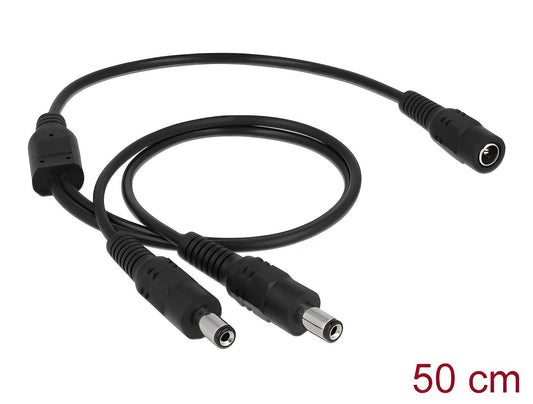 כבל מפצל חשמל שקע DC 5.5x2.1 ל- 2 תקעים DC 5.5x2.1 אורך 50 ס"מ