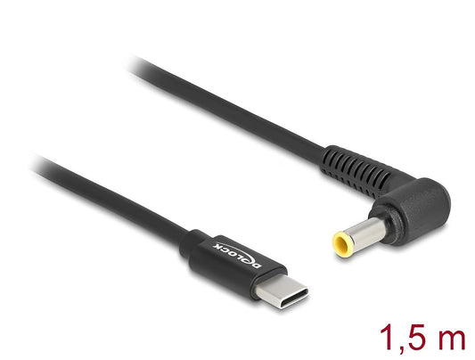 כבל טעינה Delock למחשב נייד HP/Acer מחיבור USB-C זכר לחיבור DC 5.5x1.7 זכר | תומך PD 20V/3A | אורך 1.5 מטר