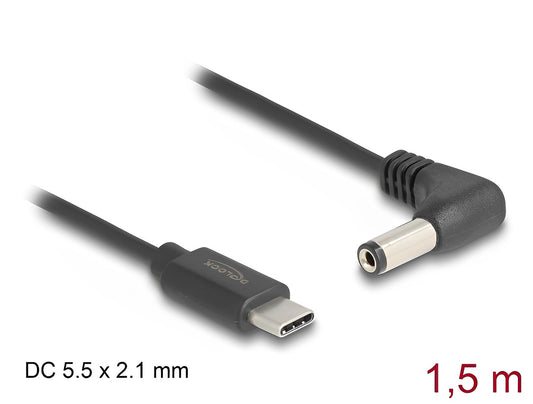 כבל חשמל Delock 5V מחיבור USB-C זכר לחיבור DC 5.5x2.1 זכר בזווית 90° | אורך 1.5 מטר