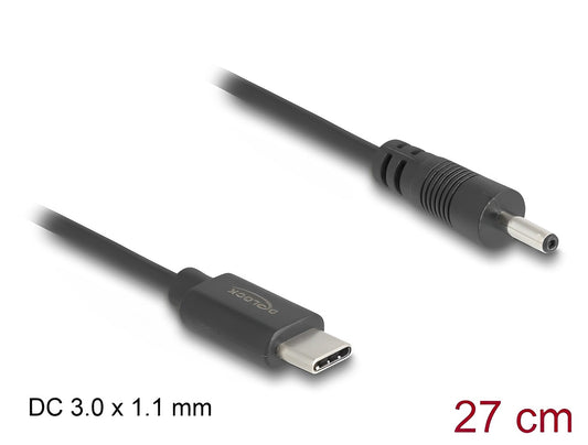 כבל חשמל Delock 5V מחיבור USB-C זכר לחיבור DC 3.0x1.1 זכר | אורך 27 ס"מ