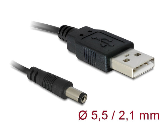 כבל חשמל Delock 5V מחיבור USB-A זכר לחיבור DC 5.5x2.1 זכר | אורך 1 מטר