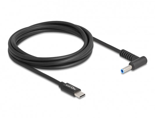 כבל טעינה Delock למחשב נייד HP מחיבור USB-C זכר לחיבור DC 4.5x3.0 זכר | תומך PD 20V/3A | אורך 1.5 מטר